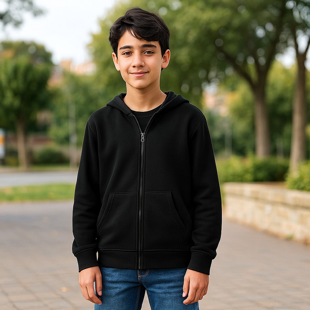 Kids Full Zip-Up Hoodie Solid Sweatshirt for Boys and Girls