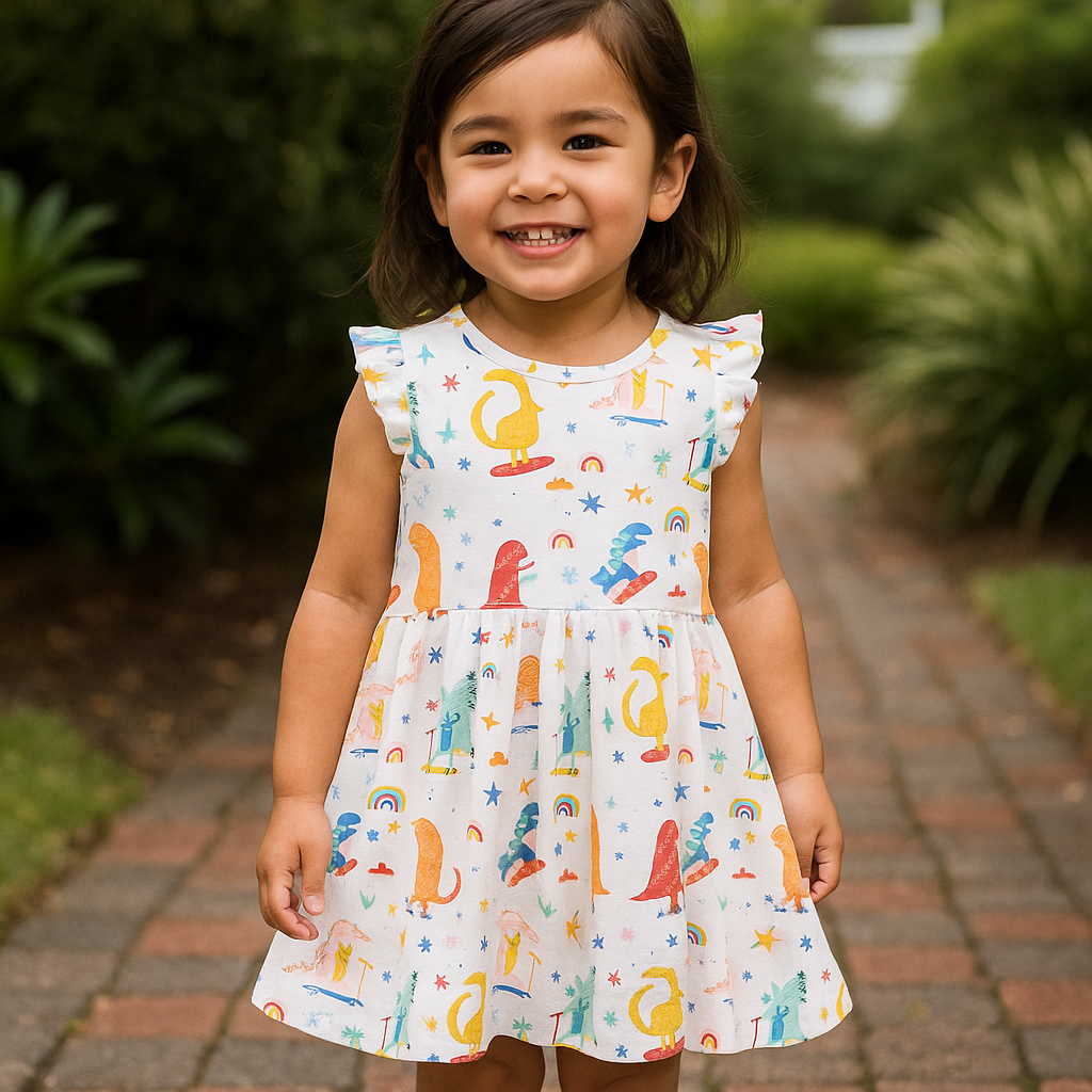 Toddler Girls Dress Ruffle Sleeve Casual Print Dresses Kids Summer Clothes 3-8 Years